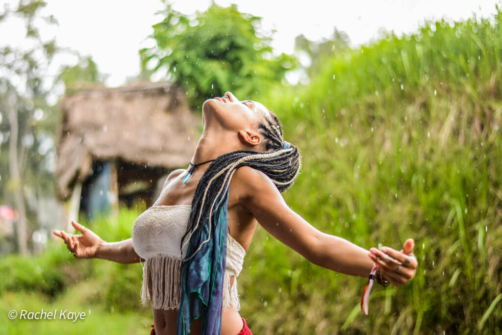 I attended a dance meditation class by Amber Sawyer, an American yoga and meditation teacher who lives in Singapore. In a seated position, we were all asked to put our hands at our “centers”. I had no idea what that meant. I figured that my center wouldn’t be my heart, otherwise Amber would have said so. Since we are what we eat, I thought it would be best to put my hands on my stomach. Amber explained in a sweet, almost bewitching, voice that the center is like the eye of a cyclone. I tried hard to focus my mind and stay present, but my eyes got distracted by the beautiful rice paddy fields surrounding the pavilion and I started listening to the birds and the crickets along the fields instead. The meditation dance involved a simple 6-step movement each of which ended with a swish sound, almost simulating the sound of an email sent on the phone. We danced exactly for 20 minutes and then whirled for another 10 minutes, and to my amazement, I started enjoying myself. Unaware of what was happening, I started picking up speed and whirling to a point where everything became a blur and I had to stop only because I was afraid of falling hard.